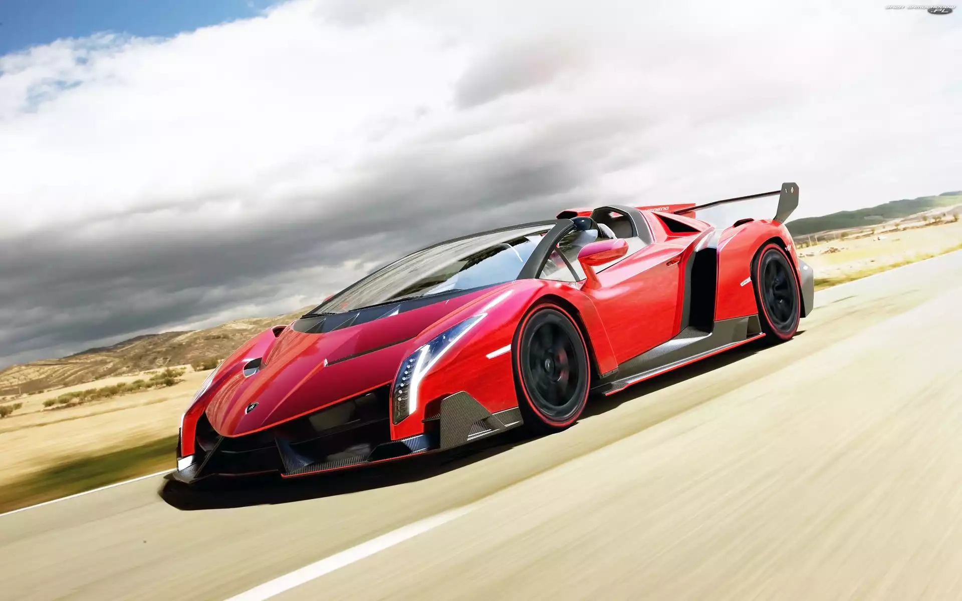 Czerwone, Lamborghini Veneno Roadster- Zdjęcia samochodów